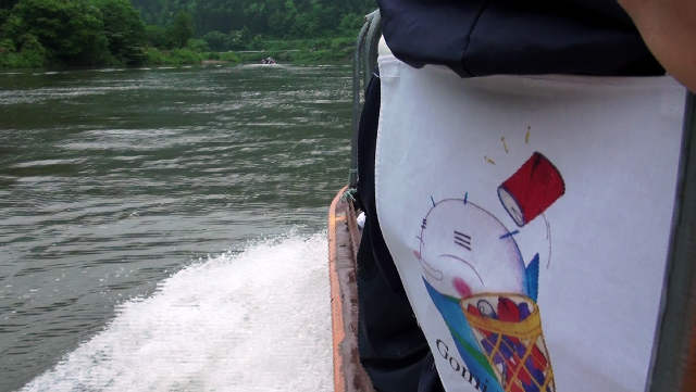 開会式を済ませると、活動場所である対岸へ川船で移動します。